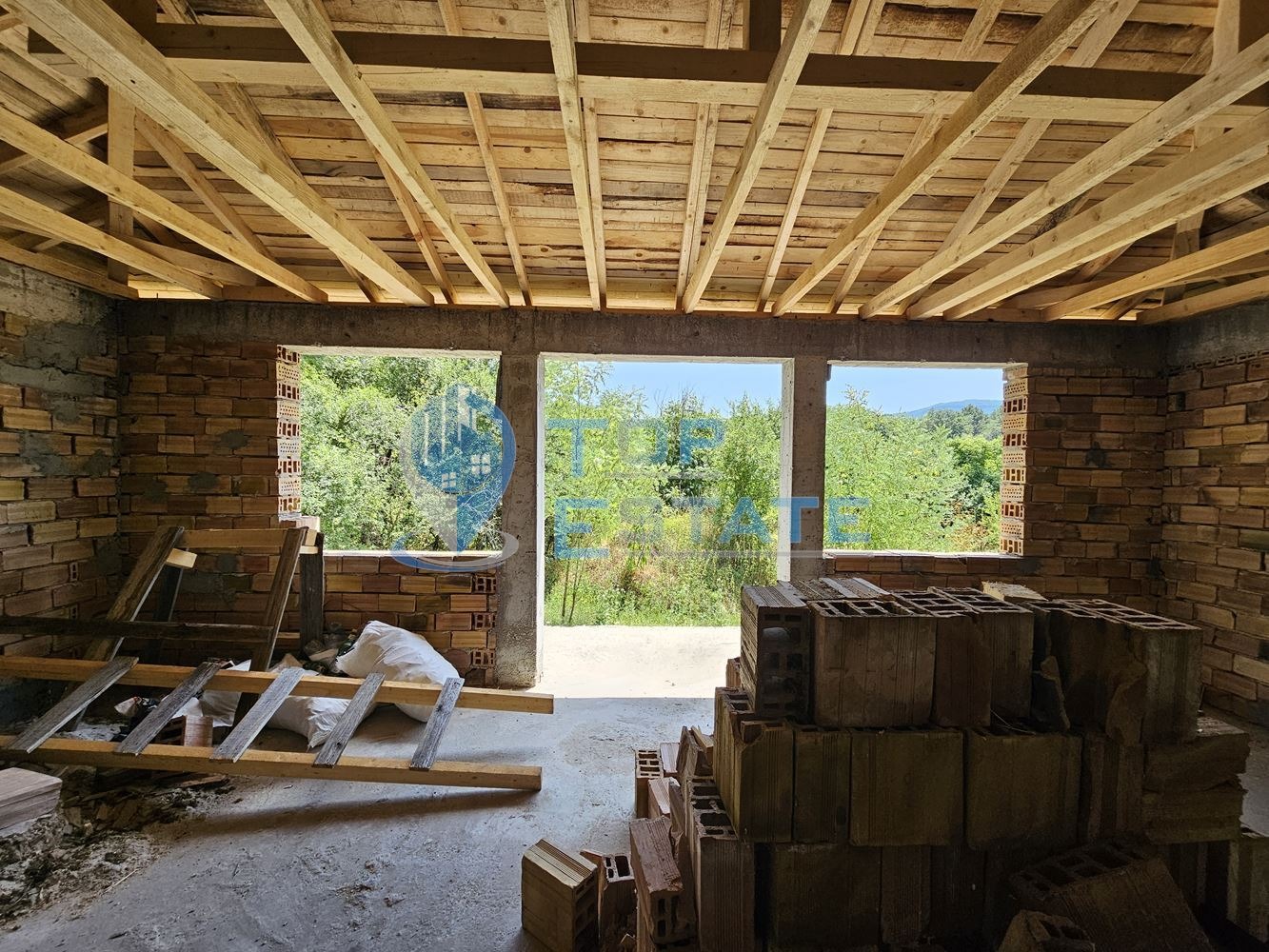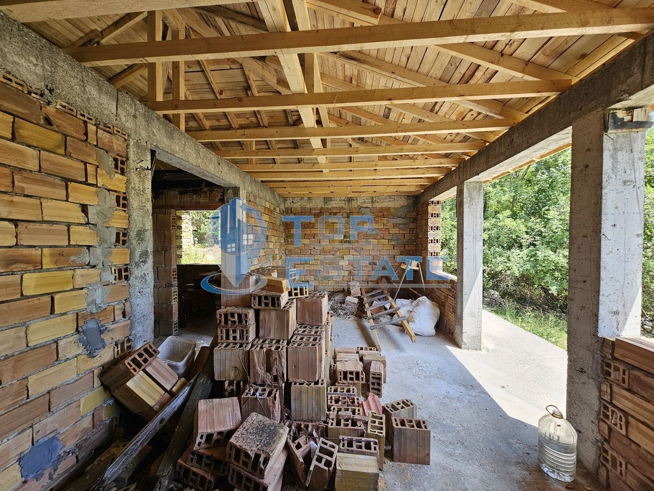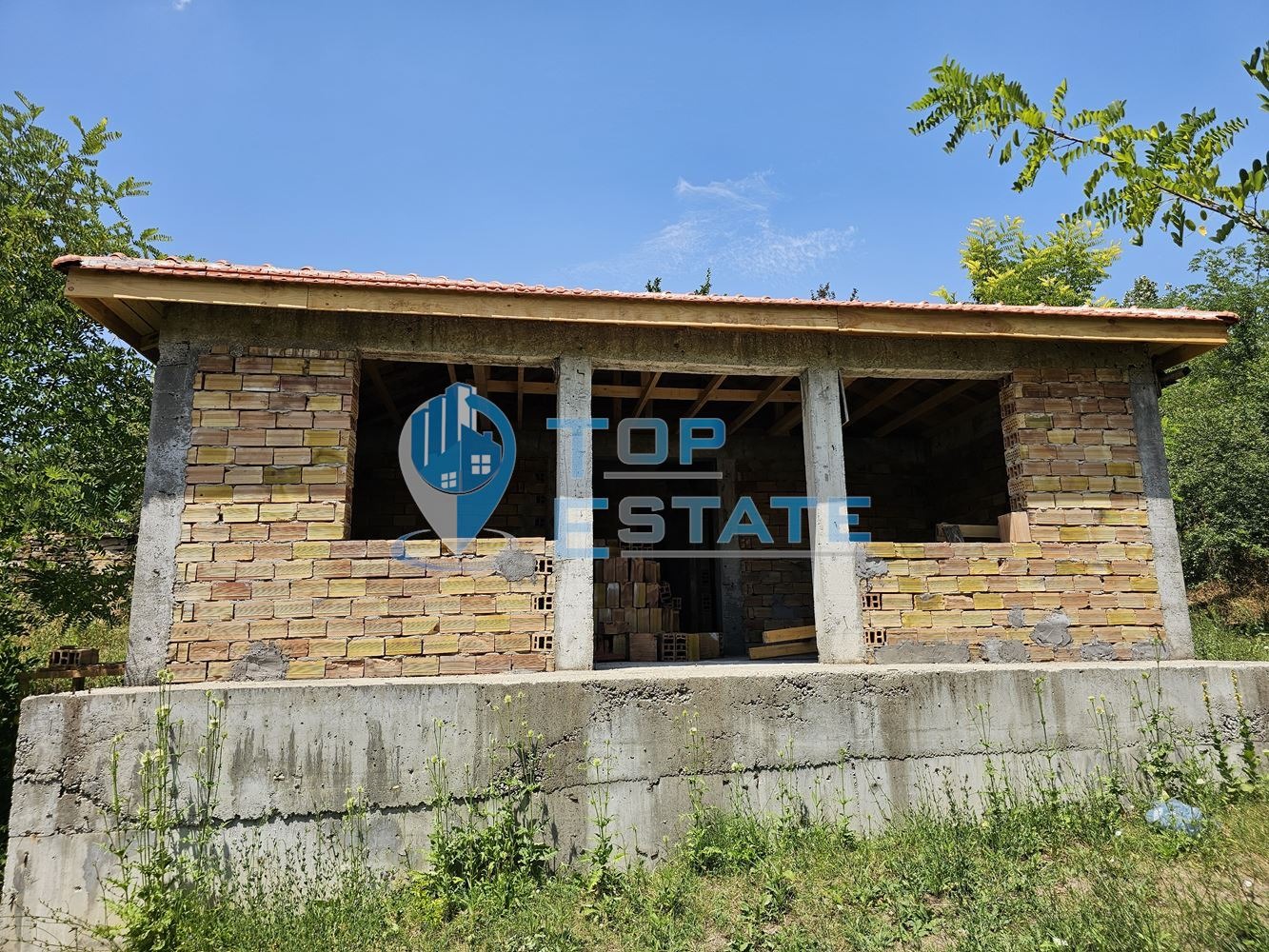 Топ Естейт Недвижими имоти Ви предлага голям парцел с къща на груб строеж в с. Славейково. Парцелът е с площ от 2523 кв.м, като към момента е разделен на две, но е възможно да бъде разделен и на три части. Къщата е със застроена площ от 56 кв.м, състояща се от две спални, всекидневна и санитарен възел, като е изградена покривна конструкция, а цялата проектна документация за завършване е налична, както и действащо разрешение за строеж от община Дряново. Имотът е с активни партиди за ток и вода, като също така е изготвен ПУП за разделяне на по-големия парцел на две части и са изготвени проекти за строеж на още две къщи. Парцелите са достъпни по два пътя от двете си страни, като се намират в близост до центъра на селото, но същевременно нямат непосредствени съседи ограничаващи панорамата от имота. Проекта може да бъде завършен като комплекс за почивка от три къщи с басейн, паркинг или като три самостоятелни еднофамилни къщи за продажба. Номер на оферта 3296. We speak English and German.