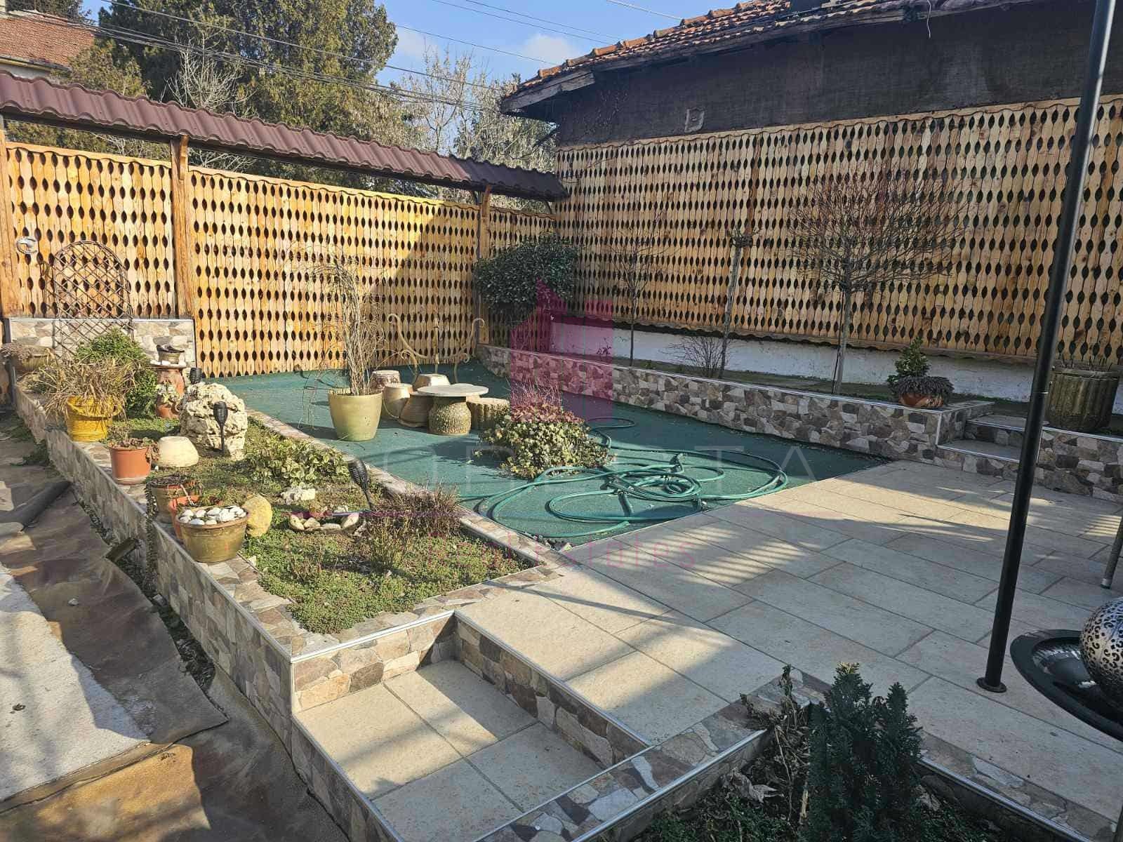 КОРЕКТА ЕСТЕЙТ Ви предлага монолитна, едноетажна къща, след основен ремонт , разположена в самостоятелен парцел от 200кв.м, находящ се в кв.Ялта. Разпределението на имота е следното: входно антре, кухненски бокс, дневна, спалня (недовършена) в полубечов етаж и санитарен възел. Двора е добре озеленен с възможност за паркиране на автомобили. Къщата е с PVC дограма, подови настилки, нова баня и др. подобрения.