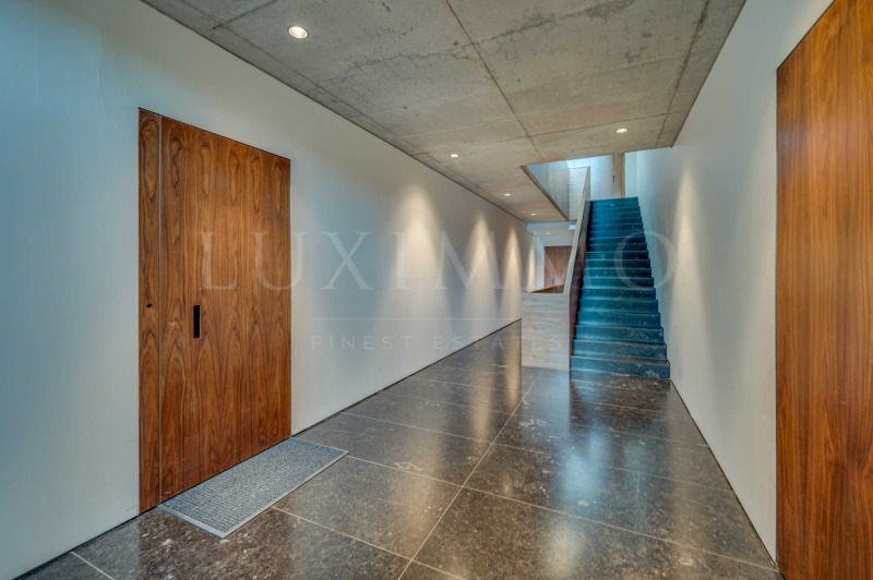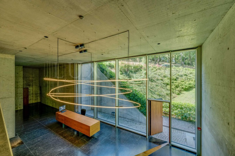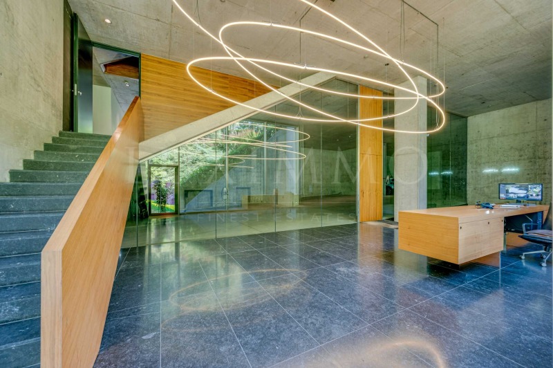 Общите части са изпипани до последния детайл настилка от полиран бетон, тавани и стени от видим бетон, едроразмерни каменни плочи във фоайето и стълбището, дизайнерско осветление и парапети от неръждаема стомана. Големите витринни прозорци превръщат сградата в естествено продължение на природата, като отразяват гората и небето.