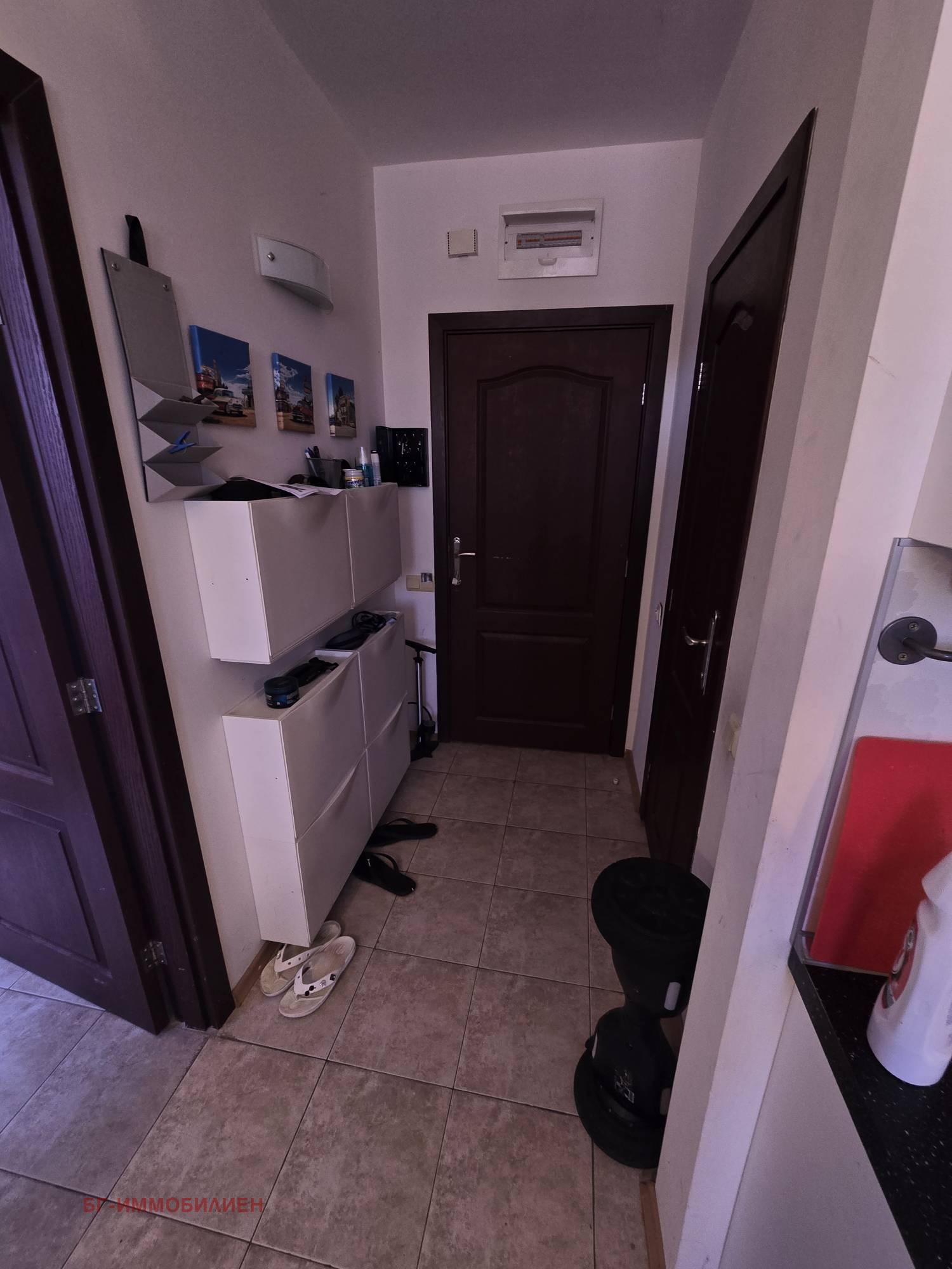 Имотът е ситуиран на пети етаж и се отличава с функционално разпределение: