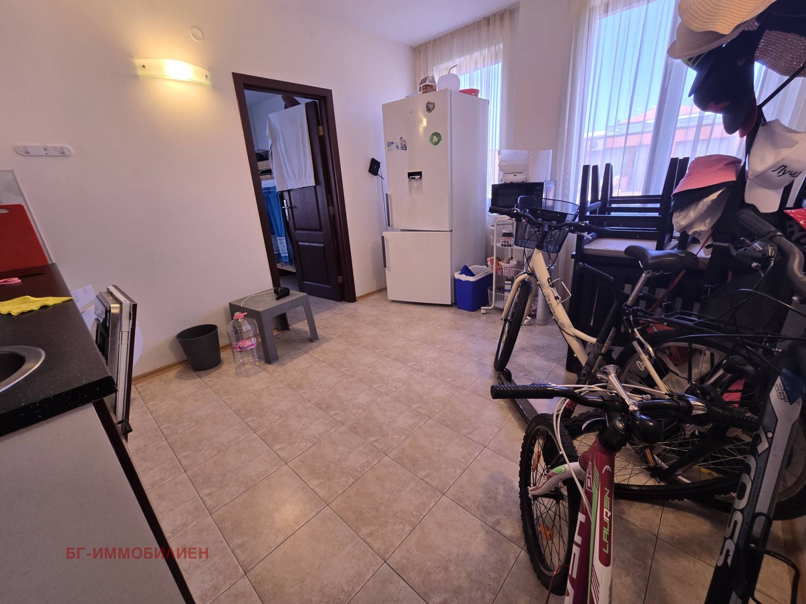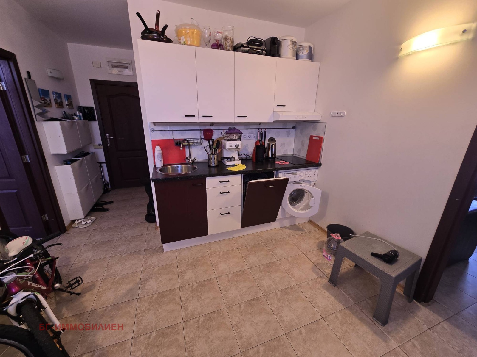 светъл хол с напълно оборудвана кухня;