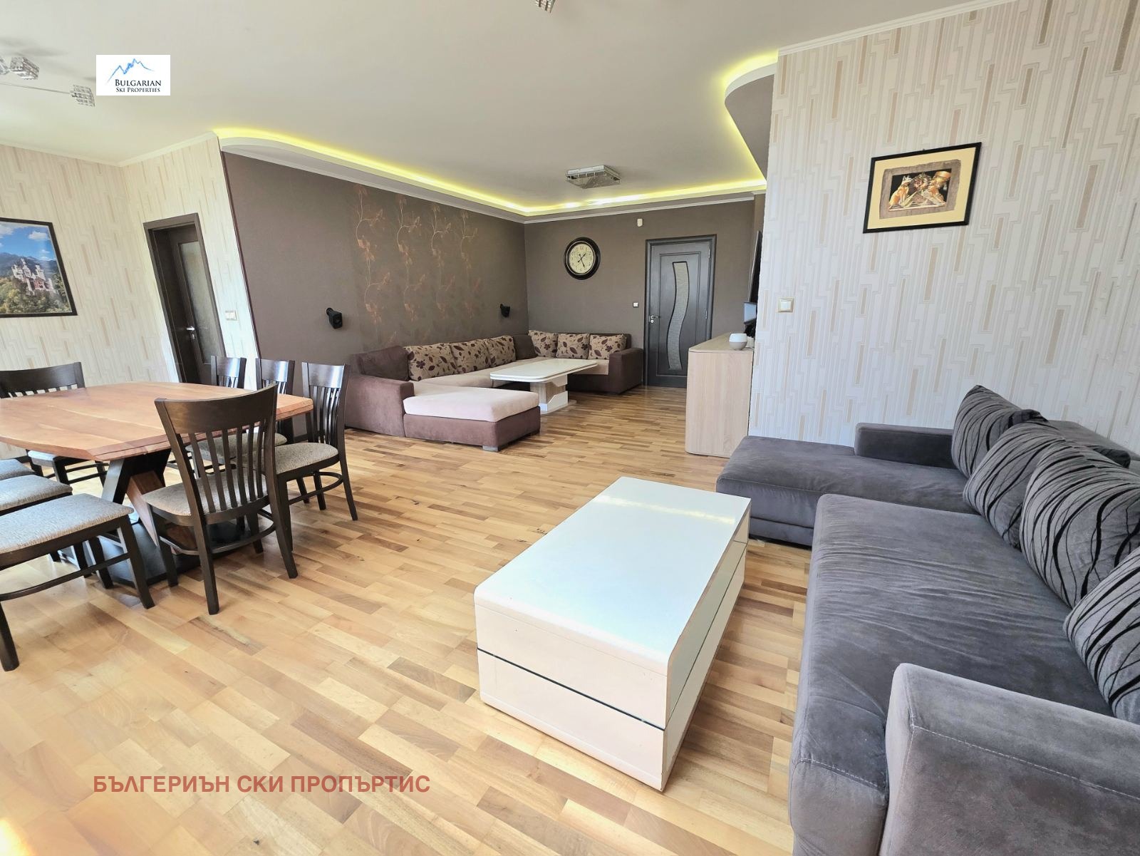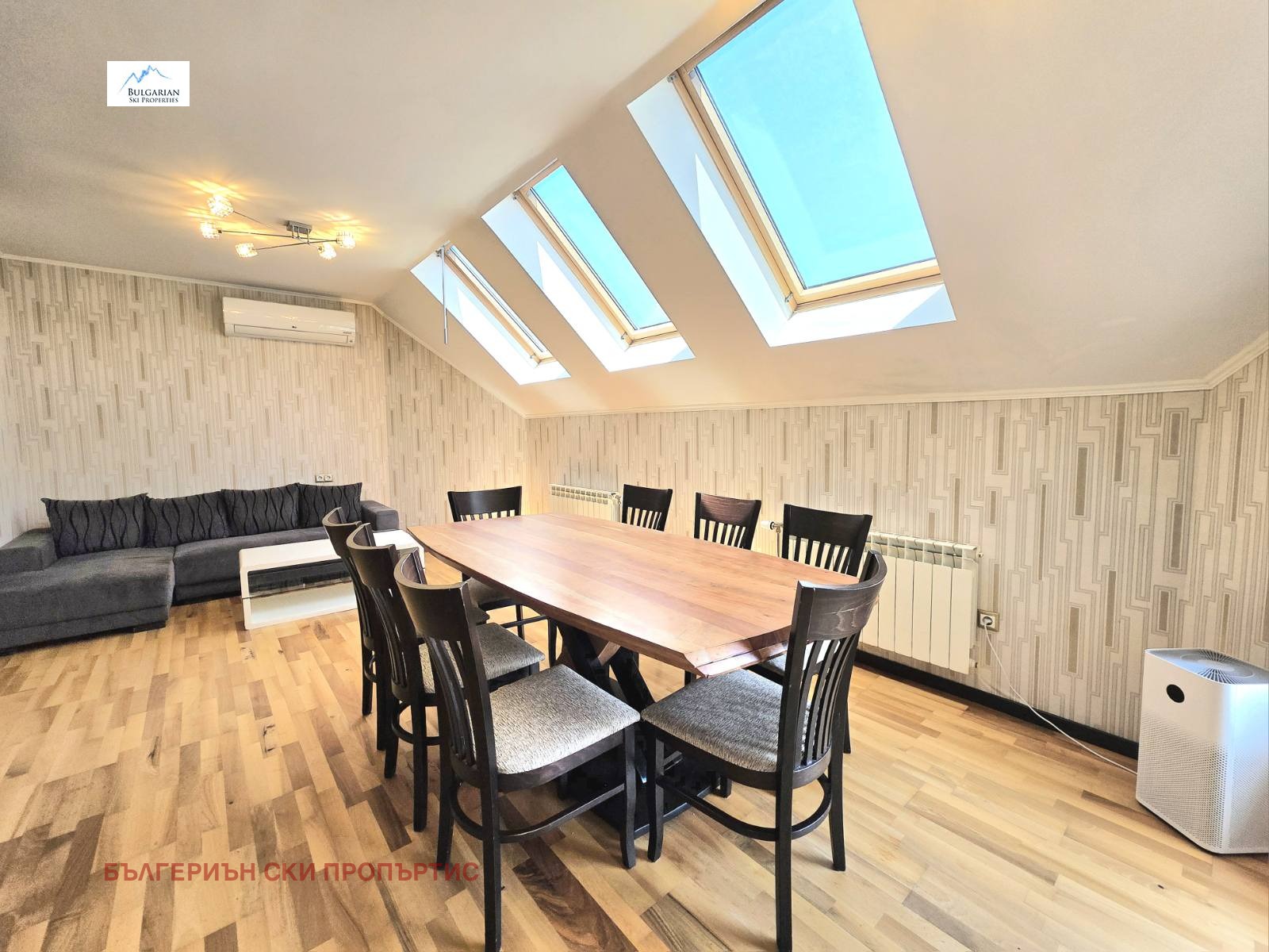 Отоплението е на ТЕЦ и ток, чрез климатици във всяка стая. Мебелите в имота са подбрани с вкус, съчетани с удобство и функционалност.