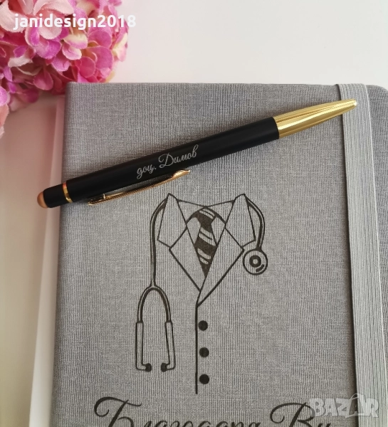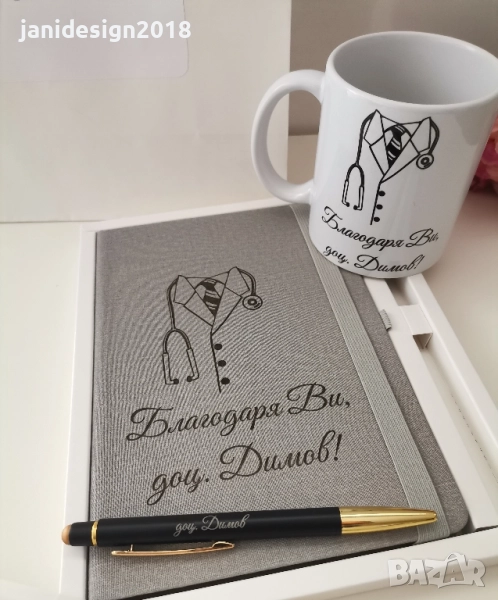Подаръчен комплект за лекар *гравиран тефтер и химикал в кутия *чаша *персонална подаръчна торбичка → Обява 51756126