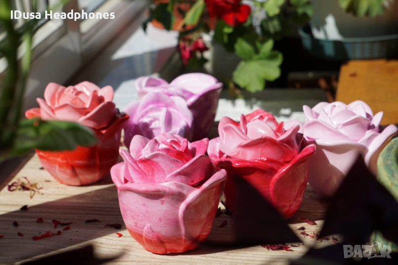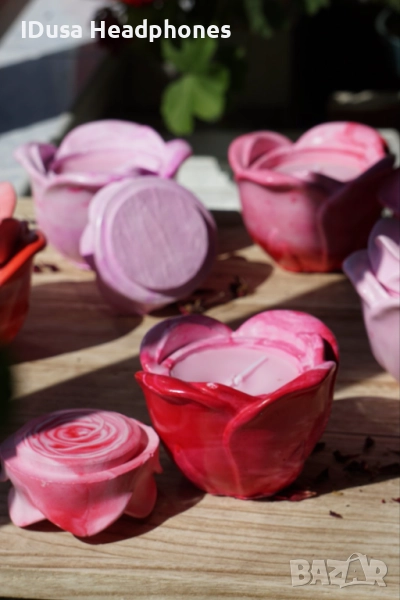 Ръчно изработени соеви свещи в керамична роза → Обява 51756413