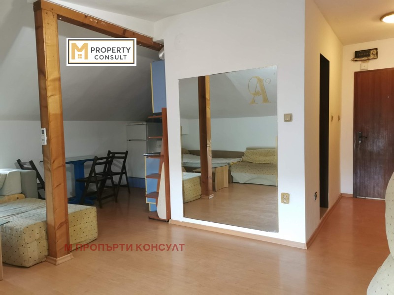 Отдава под наем напълно обзаведена и оборудвана боксониера, състояща се от кухненска част, просторна дневна и баня с тоалетна. Боксонерата е със скосения. За повече информация 0878542626.