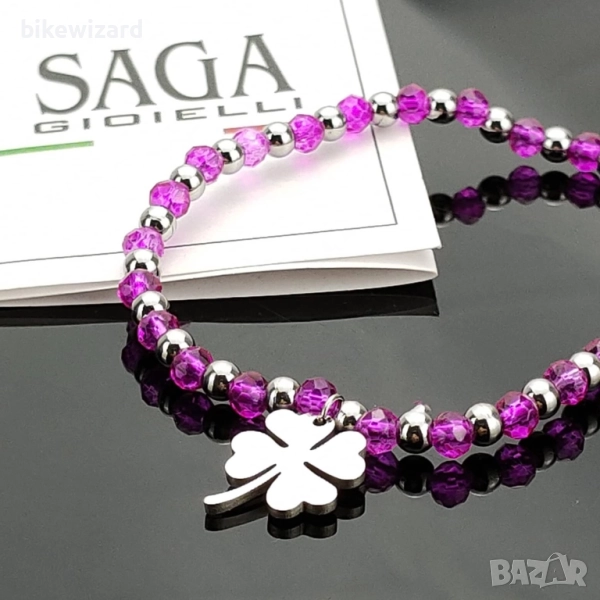 SAGA GIOIELLI Дамска гривна неръждаема стомана с четирилистна детелина 18 см,разтегателна НОВА → Обява 51756444