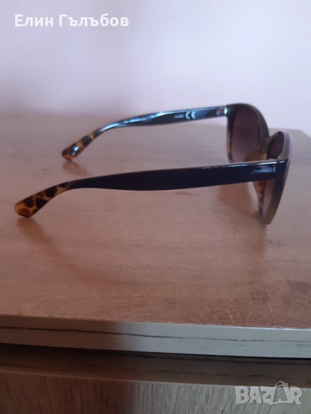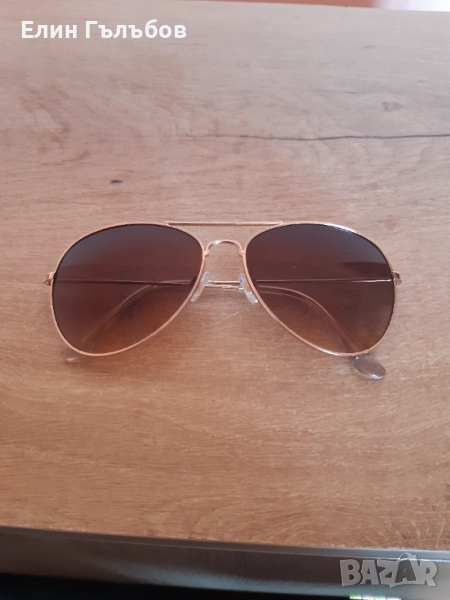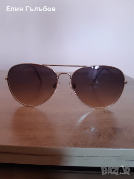 - 1. Дамски слънчеви очила с метална рамка . Рамката на очилата е изцяло в златисто .