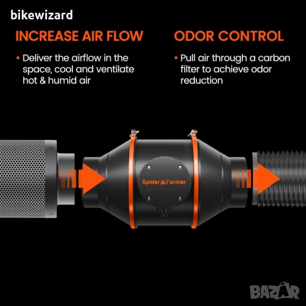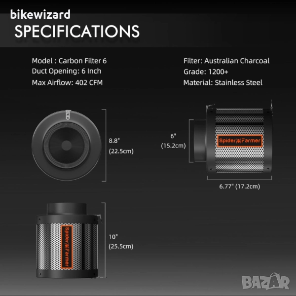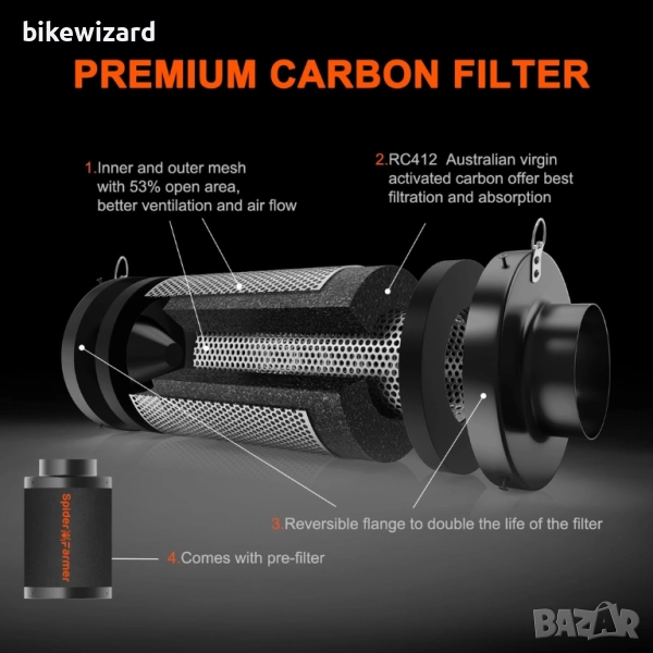 Филтър с активен въглен Spider Farmer 150 мм/6 инча, въздушен въглероден филтър, лек австралийски активен въглен за контрол на миризмите в палатки за отглеждане, въздушен филтър за вентилатор, филтрация на въздуха, оранжерия
