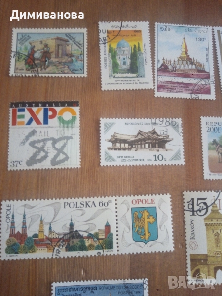 50 пощенски марки от различни държави.