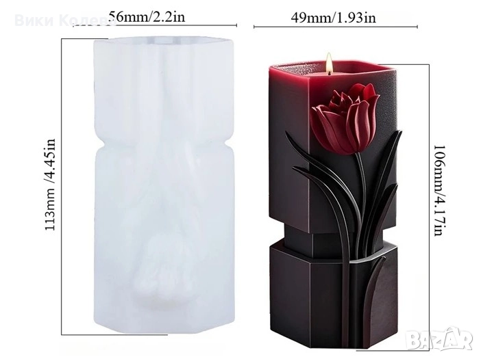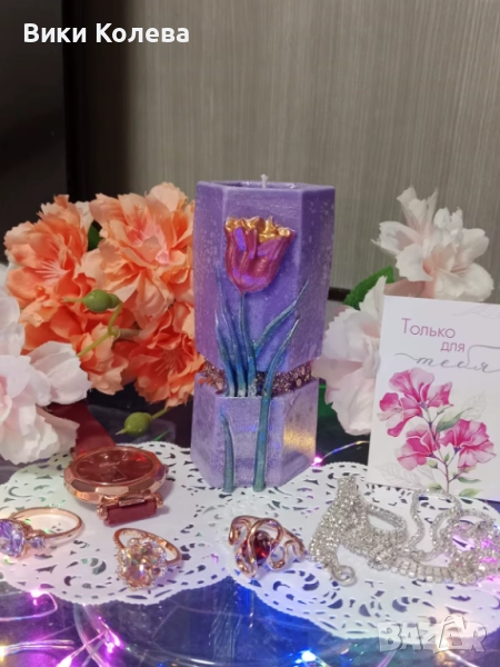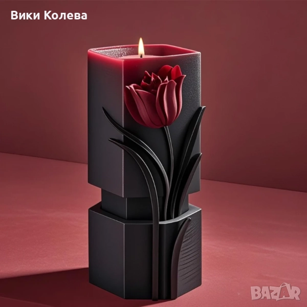 Продава се висококачествен силиконов мод за изработка на свещи, сапуни или декоративни фигури. Дизайнът е уникален – изящно лале върху елегантна геометрична основа, което придава на всяка ръчно изработена свещ изключителен и стилен вид.