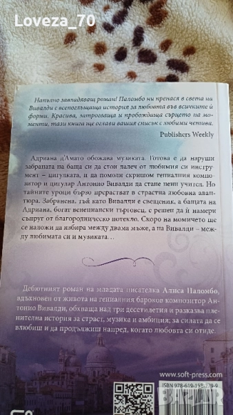 Рядка книга. Отлично състояние, 446 страници, 2016г. Любовна страст между Адриана и Антонио Вивалди световния цигулар
