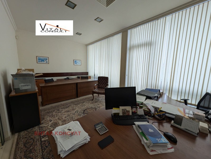Луксозно оборудван офис в представителна сграда - Мишел на бул.България; Имотът е в отделна офис секция на сградата с 24/7 охрана; Състои се от приемна на гранитогрес, работна зала на гранитогрес, голяма кабинет на паркет, заседателна зала на паркет, кухненски бокс и санитарно помещение; Две подземни парко места с топла връзка към сградата; Отлична локация - бърз достъп до главните артери на града - Околовръстен път, бул.България; Сграда 'Мишел' е сграда клас ААА ,със сертификат ISO 9001:2000; Сигурността е решена чрез модерна охранителна система за достъп и контрол 24-часова жива охрана. Има изградена четиритръбна климатична система и вентилационна инсталация.