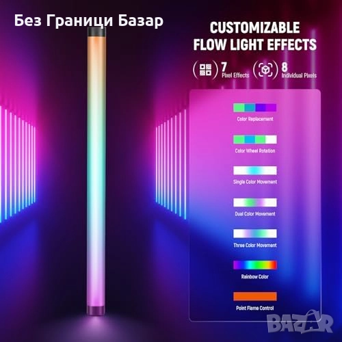 RGBWW система с 360° цветове, 0-100% димиране и 17 готови светлинни сцени