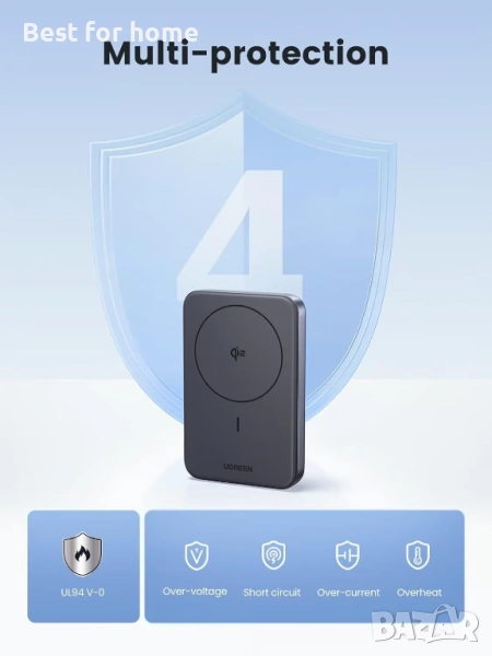 UGREEN 45763 Magsafe 10000mAh 30W Qi2 сертифицирана магнитна безжична външна батерия за iPhone серия 12-16 Qi2 стандарт: Qi2 поддържа изходна мощност до 15W, което е двойно по-бързо от конвенционалните преносими зарядни устройства magSafe от 7,5W, като гарантира, че устройствата ви ще се заредят напълно за два пъти по-бързо.30W кабелно зареждане: Можете да зареждате и презареждате устройствата си с пълна скорост с тази магнитна външна батерия. С кабелно зареждане през USB-C, тя е съвместима с вашия телефон, таблет или други масови USB-C устройства.Компактен в дланта ви: Неговият джобен размер и лек дизайн се побират без усилие във всеки джоб, а мекото покритие осигурява приятен захват, което го прави идеалният спътник за вашия начин на живот в движение.Малък размер, голяма мощност: Това преносимо зарядно устройство е оборудвано с мощна батерия от 10 000 mAh, която захранва вашите устройства като смартфони и таблети през целия ден. Може да зареди почти всички мобилни телефони 1-2 пъти.Относно съвместимостта: Магнитната външна батерия (Magnet Power Bank) е оптимизирана за iPhone серия 12-16 с Qi2 15W магнитно бързо зареждане (препоръчва се магнитен калъф). Обърнете внимание, че скоростта на безжично зареждане за Android устройства е по-малка от 15W.