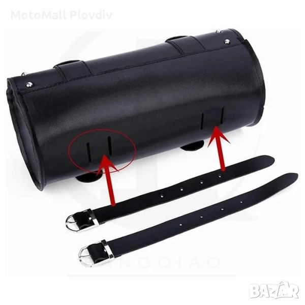 Кожената мото чанта е подходяща за поставяне на инструменти, различни вещи и аксесоари. Ремъци с катарами за закопчаване към вилката, или към рамката на мотоциклета.