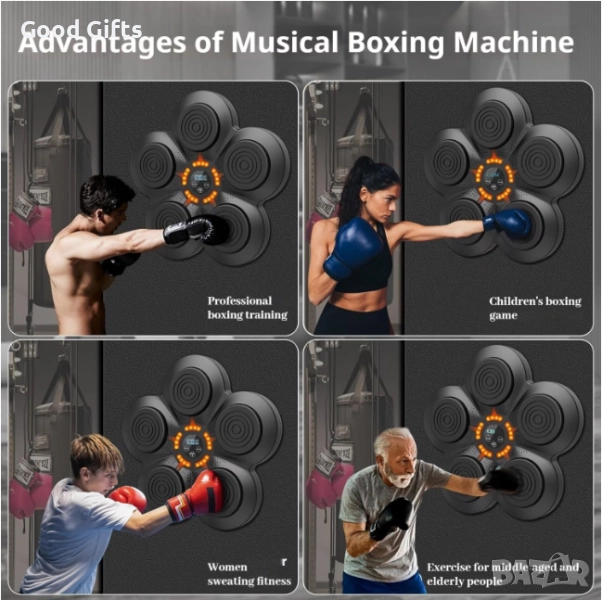 Музикалната бокс машина е идеалното решение за професионални спортисти, фитнес ентусиасти, деца и дори за възрастни хора. Тя комбинира бокс тренировки с ритъм, музика и светлинни ефекти, превръщайки всяко занимание в забавно и ефективно изживяване.