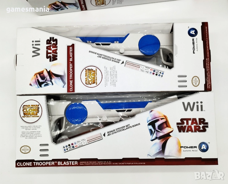 Впуснете се в епични битки за бъдещето на галактиката с автентичния Wii Clone Trooper Blaster! Може да се използва във всяка игра за стрелба за Nintendo Wii и Wii UА.Създаден специално за играта Star Wars The Clone Wars: Republic Heroes, този аксесоар превръща всяка мисия в още по-реалистично приключение.