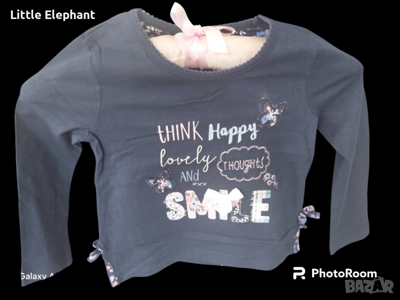 Блузка с дълъг ръкав за 2-3 год мом"Think happ,lovely thoughts and smile",Англия/нова → Обява 51759693