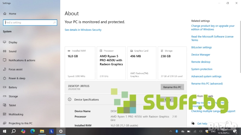 Процесор: AMD Ryzen 5 Pro 4650U 2.1GHz