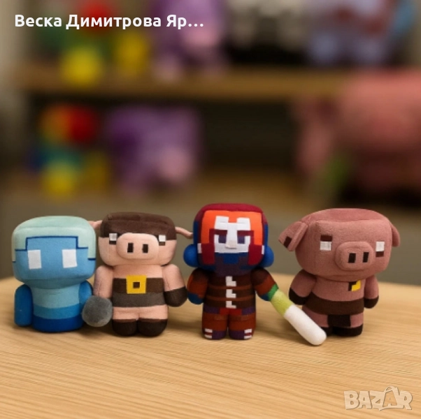 Плюшени фигури, вдъхновени от стилистиката на култовата игра Minecraft, създадени с внимание към детайла и характерния пикселен дизайн. Всяка фигура се предлага поотделно и е с височина около 20 см. Подходящи са както за деца, така и за колекционери, фенове и подарък за всеки повод.