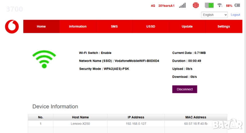 Донесена от чужбина и ползвана за кратко със SIM на А1 и Виваком.