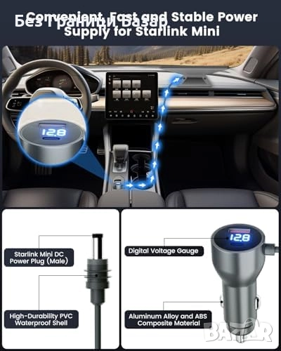 Нов Захранващ адаптер за Starlink Mini 12V-24V с дигитален дисплей за кола