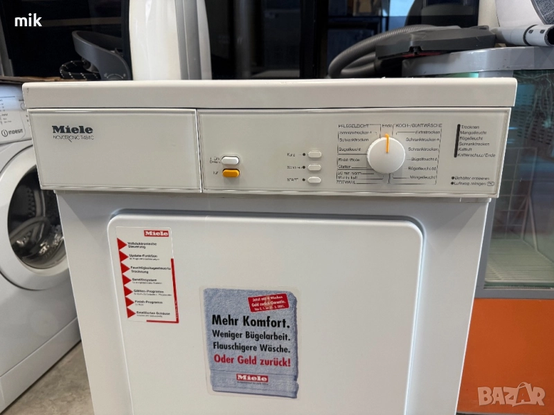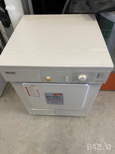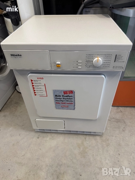 Сушилня Миеле с ваничка за вода! Размери 85/60/60. Много запазен външен вид! Много лесна за работа - без излишна електроника! За употребата на сушилнята не се нуждаете от канализация за изтичане на водата!