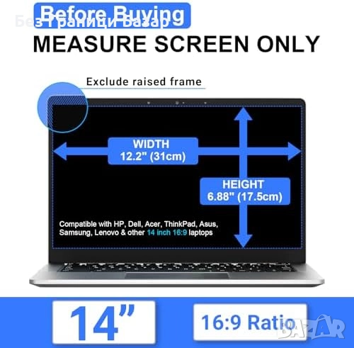 Прецизни размери 14" 16:9 (31.0 x 17.5 см) – подходящ за HP, Dell, Lenovo, Asus, Acer