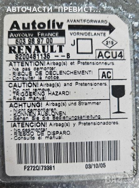 Airbag модул сензор датчик зa Renault Scenic 2 8200481136 603989700 Рено Сценик 2 → Обява 51761925