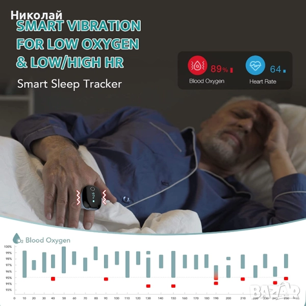 - LED дисплей за кислород в кръвта и сърдечен ритъм на