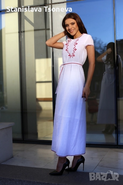 Дълга дамска бяла рокля с шевица , снимка 1 - Рокли - 51762254 Дълга дамска бяла рокля с шевица , снимка 2 - Рокли - 51762254 Дълга дамска бяла рокля с шевица , снимка 3 - Рокли - 51762254 1/3