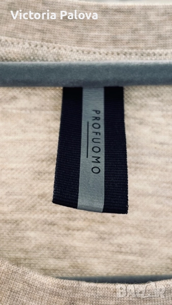 Неизползвана оригинална тениска PROFUOMO - луксозен бранд, известен със стил , елегантност и внимание към детайла. Моделът е изработен от органичен памук - мека и издръжлива материя,която осигурява комфорт и усещане за истински лукс. Дизайнът е минималистичен и изискан , а финото лого PROFUOMO в долната част добавя луксозен завършек. Тази тениска е не просто дреха, а стилно инвестиционно парче за гардероба ви. Рамо - 50см, ГО - 60см, дължина - 76см, странични малки цепчици.
