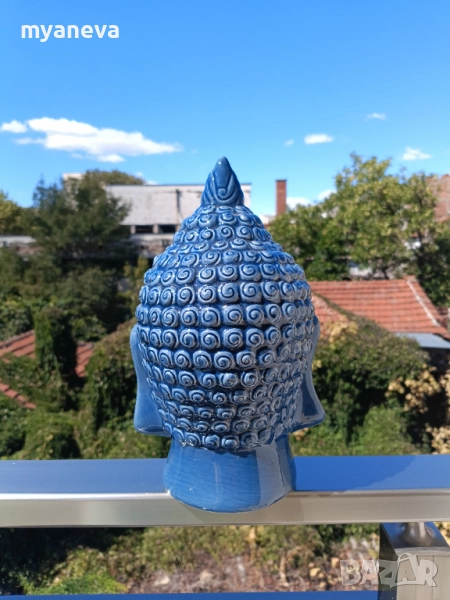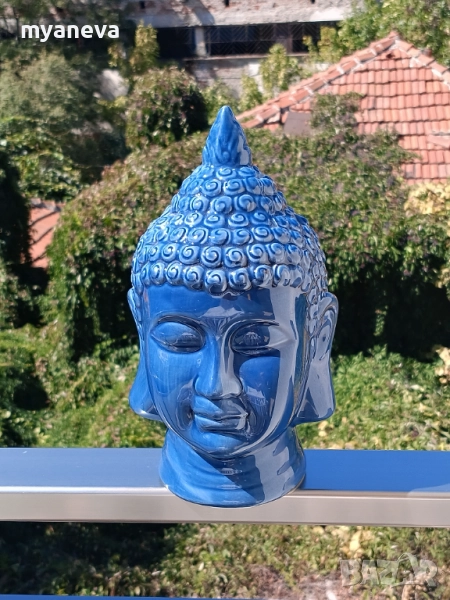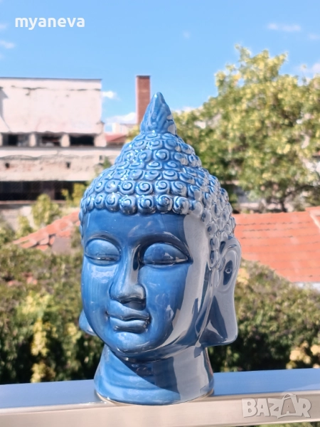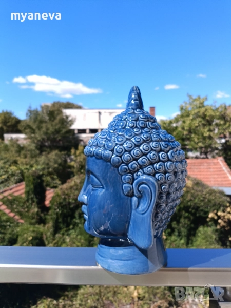 Порцеланови глава на Буда в поза релакс и медитация. Предлагат се в яркосин и снежнобял цвят.