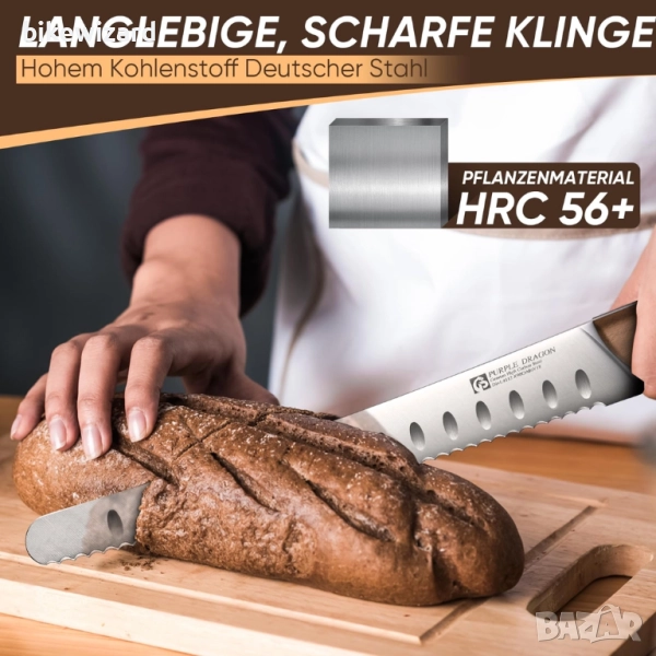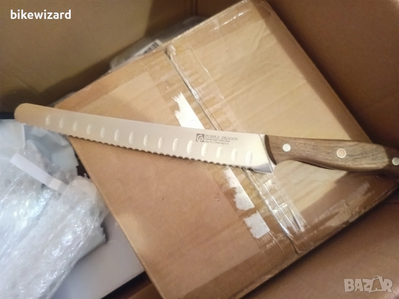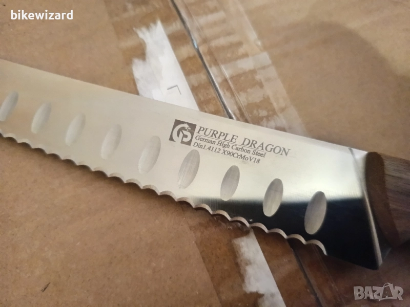Purple Dragon Нож за хляб с назъбено острие и ергономична дървена дръжка НОВ → Обява 51762745