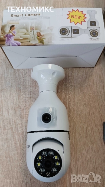 Монтаж: Завийте камерата директно в стандартен цокъл Е27, както обикновена крушка. Включете захранването – камерата стартира автоматично. Не са нужни допълнителни кабели, пробиване или майстори;