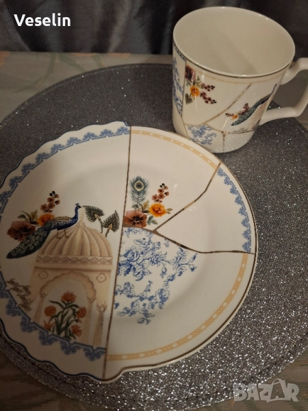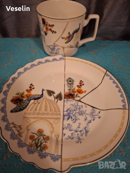 Сет от 2 части- чиния за кейк и чаша за какао → Обява 51762890