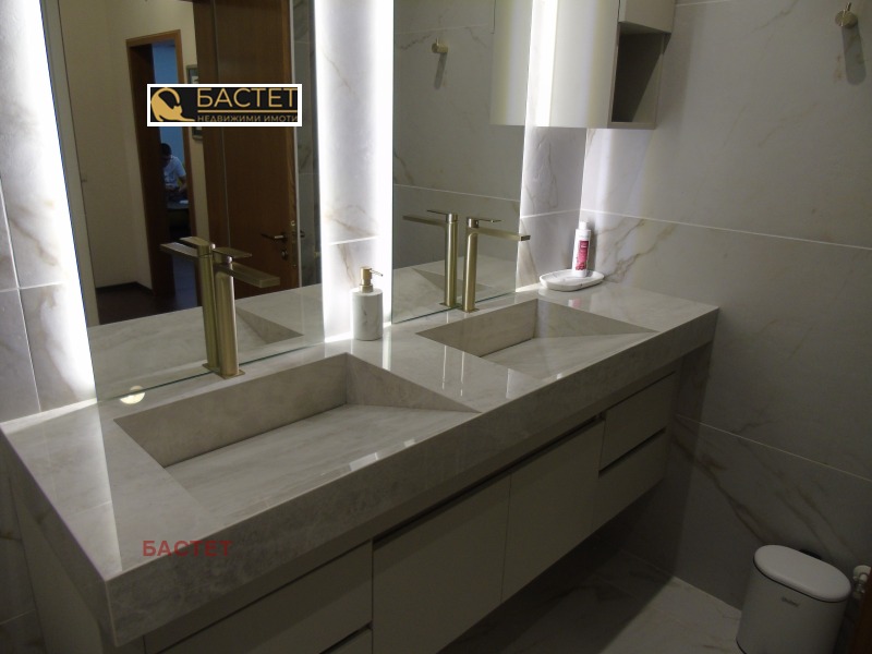 Стилно обзаведен, просторен апартамент със ЗП 224.30 кв.м. Състои се от обединени два съседни апартамента - двустаен и тристаен в следното разпределение: входно антре, три спални, две дневни с трапезария и кухненски бокс - 43 кв.м. и 38 кв.м. склад - 2 броя, мокро помещение, 2 бани с тоалетни, отделно тоалетна. Тераси пред всички стаи, една от дневните е с две тераси. Жилището е обзаведено с изцяло нови мебели и техника. Апартаментът е изграден и завършен с висок клас материали. Дограма, мебели и врати - от естествено дърво, масив. Отопление - две отделни газови котлета с две отделни термоглави - с дистанционно управление. За комфорта на живущите са монтирани нови климатици висок клас във всяка стая. СОТ, интернет. Изложението е юг/запад/север. Сградата разполагат с двор с беседка и барбекю. Към апартамента се продава и 3 подземни паркомяста по 45000 евро. Сградата е разположена в близост до ул.Пушкин, тихо и спокойно място с много зеленина. Наоколо стилни и модерни сгради.Ако нашето предложение ви представлява интерес, можем да организираме оглед в удобно за вас време. За контакти: 0897565147; 0988921982.