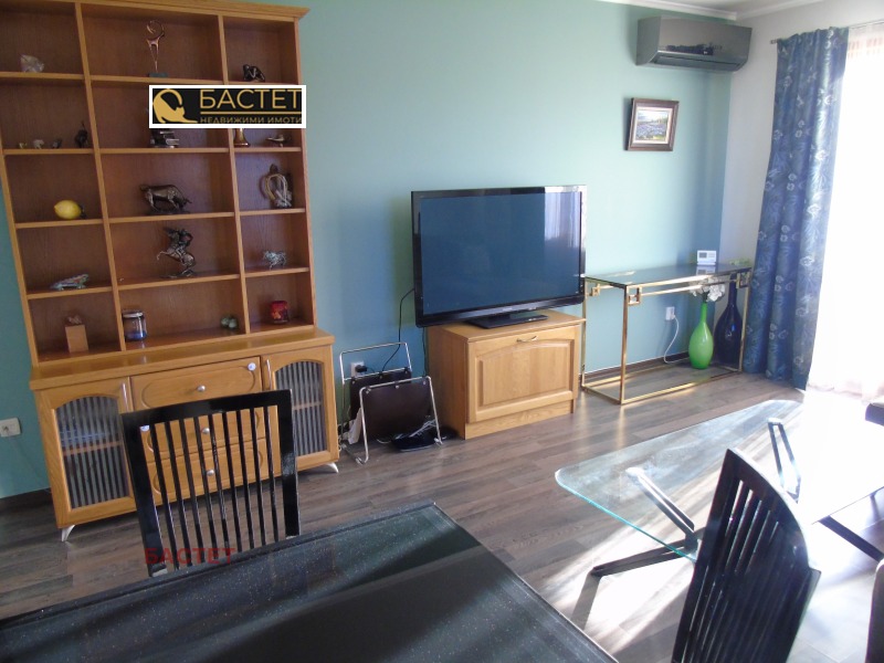 Стилно обзаведен, просторен тристаен апартамент със ЗП 127 кв.м. Разположен в сграда на ул. Карамфил в близост до ул. Пушкин, тихо и спокойно място с много зеленина. Наоколо стилни и модерни сгради. Състои се от входно антре, склад, баня с тоалетна, втора тоалетна, дневна с трапезария и кухненски бокс 38 кв.м, обзаведена изцяло, с две тераси, 2 спални, красива тераса на запад. Апартаментът е изграден и завършен с висок клас материали. Дограма, мебели и врати - от естествено дърво, масив. Отопление - газово котле с термоглава - с дистанционно управление. За комфорта на живущите са монтирани нови климатици висок клас във всяка стая. СОТ, интернет. Сградата разполагат с двор с беседка и барбекю. Към апартамента се продават 2 подземни паркомяста по 45000 евро. Ако нашето предложение ви представлява интерес, можем да организираме оглед в удобно за вас време. За контакти: 0897565147; 0988921982.