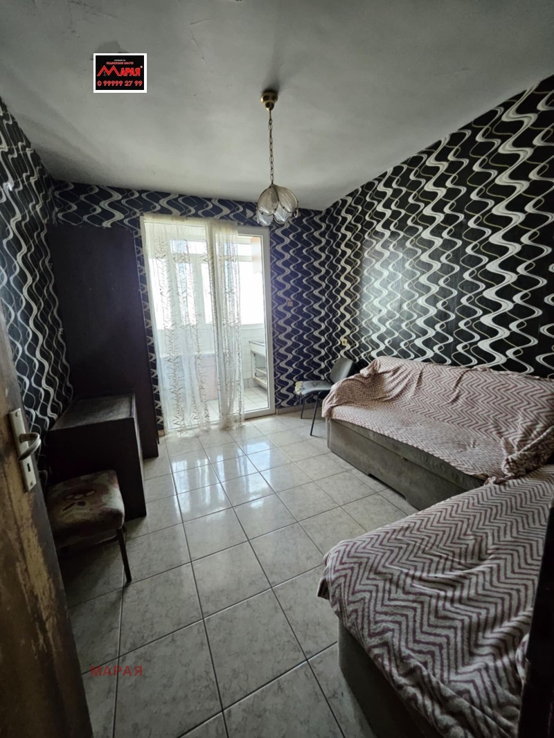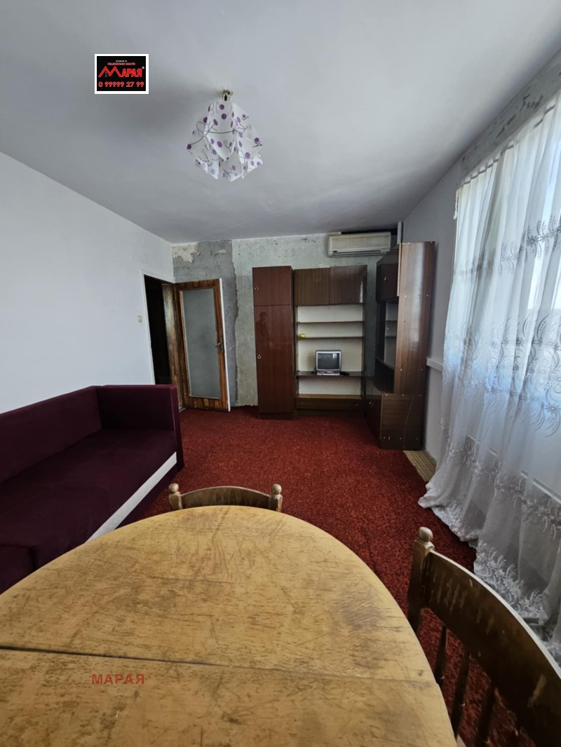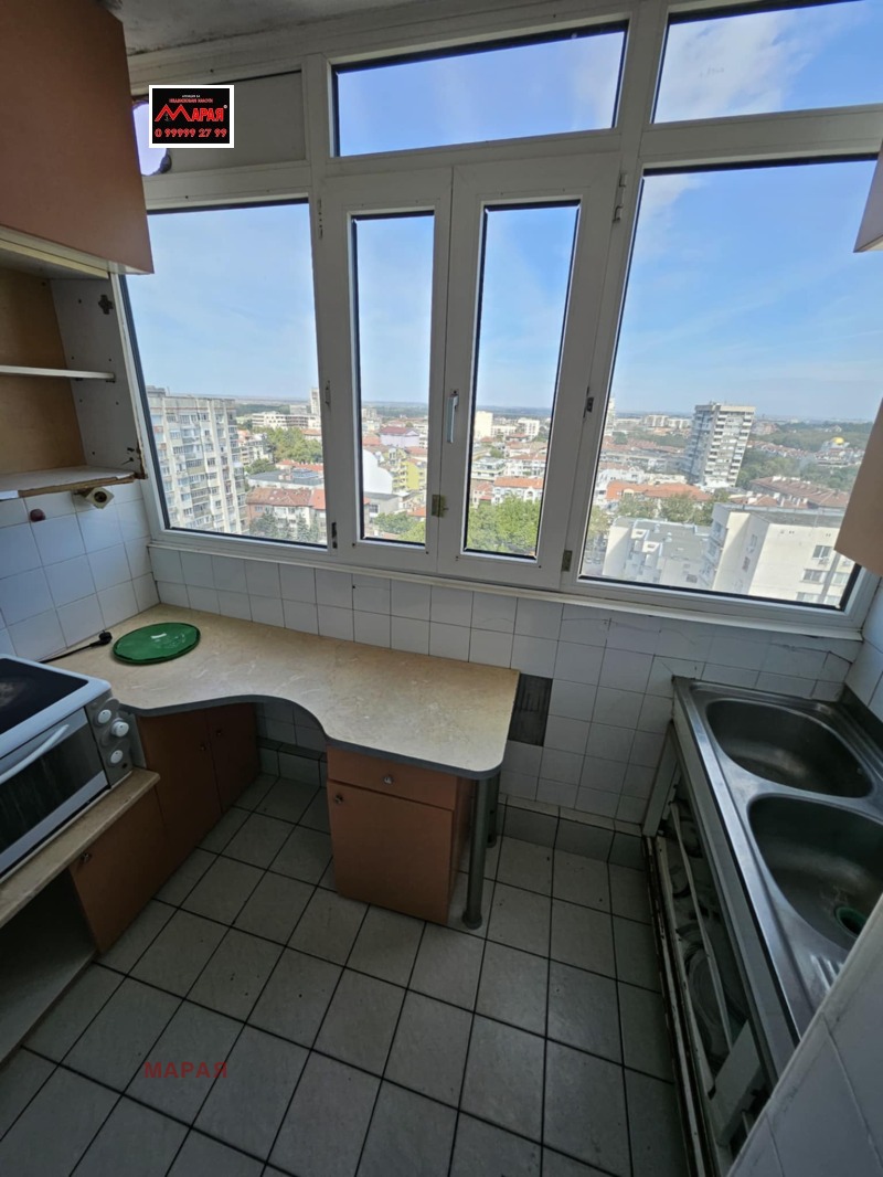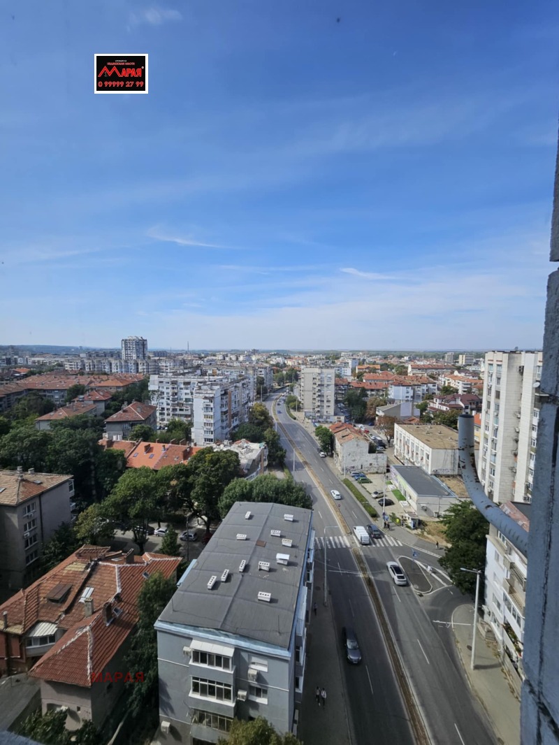 Реф. номер 14451 Агенция 'Марая' предлага за продажба просторен двустаен апартамент с 63,00 кв.м. чиста жилищна площ, на тринадесети етаж с прекрасна гледка, в 14 етажен блок с два асансьора и добре поддържани общи части. Намира се в близост до кооперативен пазар и центъра . Състои се от голям хол, кухня с тераса, спалня, баня и тоалетна в едно помещение, килер, маза 5 кв. м. Апартаментът е с две изложения север и запад, отоплението е на ток . До блока има паркинг и детска площадка, спирки на градския транспорт, магазини и др.