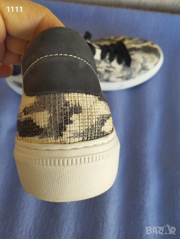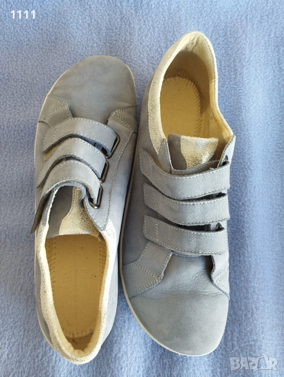И трите чифта обувки са обувани броени пъти с едва доловими следи от употреба са.Мека естествена кожа.Много удобни и комфортни.Всички са номер 42.Finn comfort са тъмно бежов цвят с дължина на стелката 27, 5см.Цена 65лв.Сините са марка Helvesko с дължина на стелката 27,5см.Цена 67лв.Пъстрите са Gabor също с дължина на стелката 28см.Цена 70лв.И трите марки обувки са скъпи и качествени.