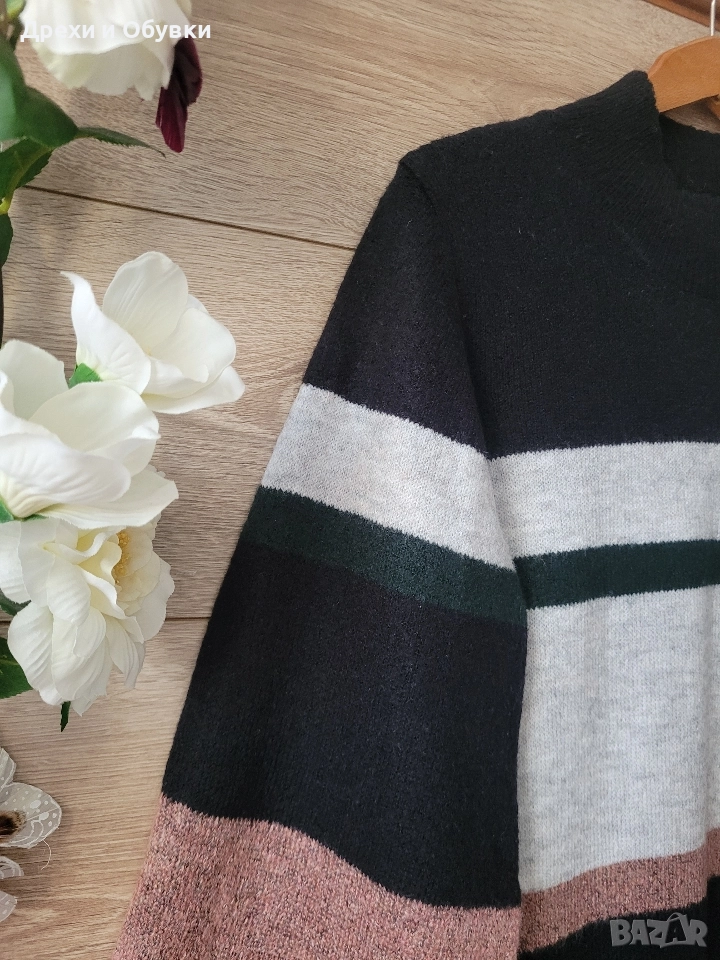 Моделът е с райета в черно, зелено, сиво и розово, които придават свеж и стилен акцент.