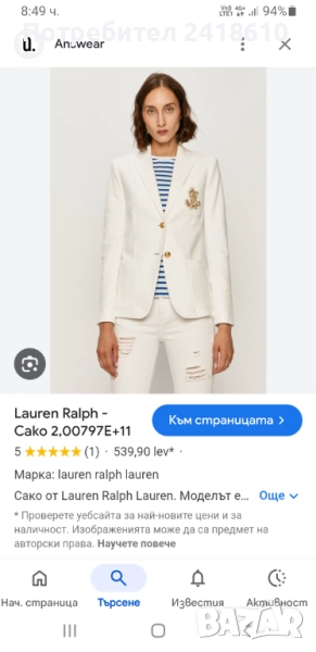 Оригинално дамско бяло сако - ново !