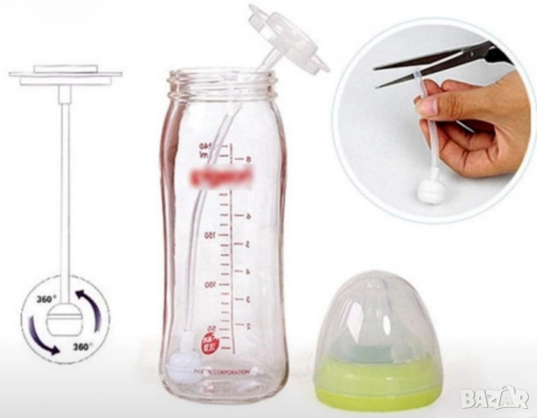 Много е лесен за използване, с възможност за оразмеряване на тръбичката в съответствие с височината на шишето. Просто дискът се поставя в биберона, а другият край с топченцето трябва да достига и плътно да опира дъното му.