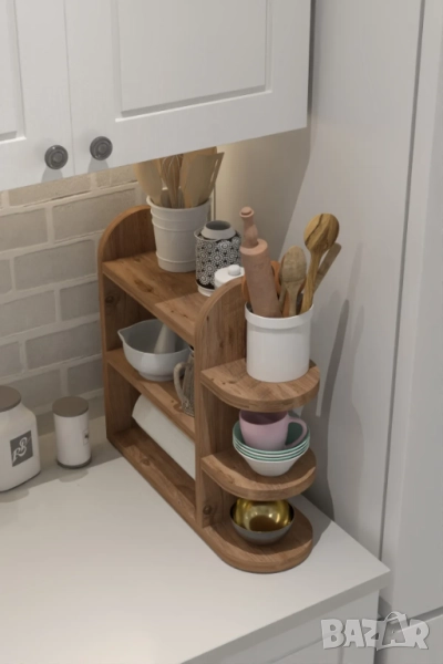 Дървена етажерка за кухня / Органайзер за подправки / Кухненски рафт