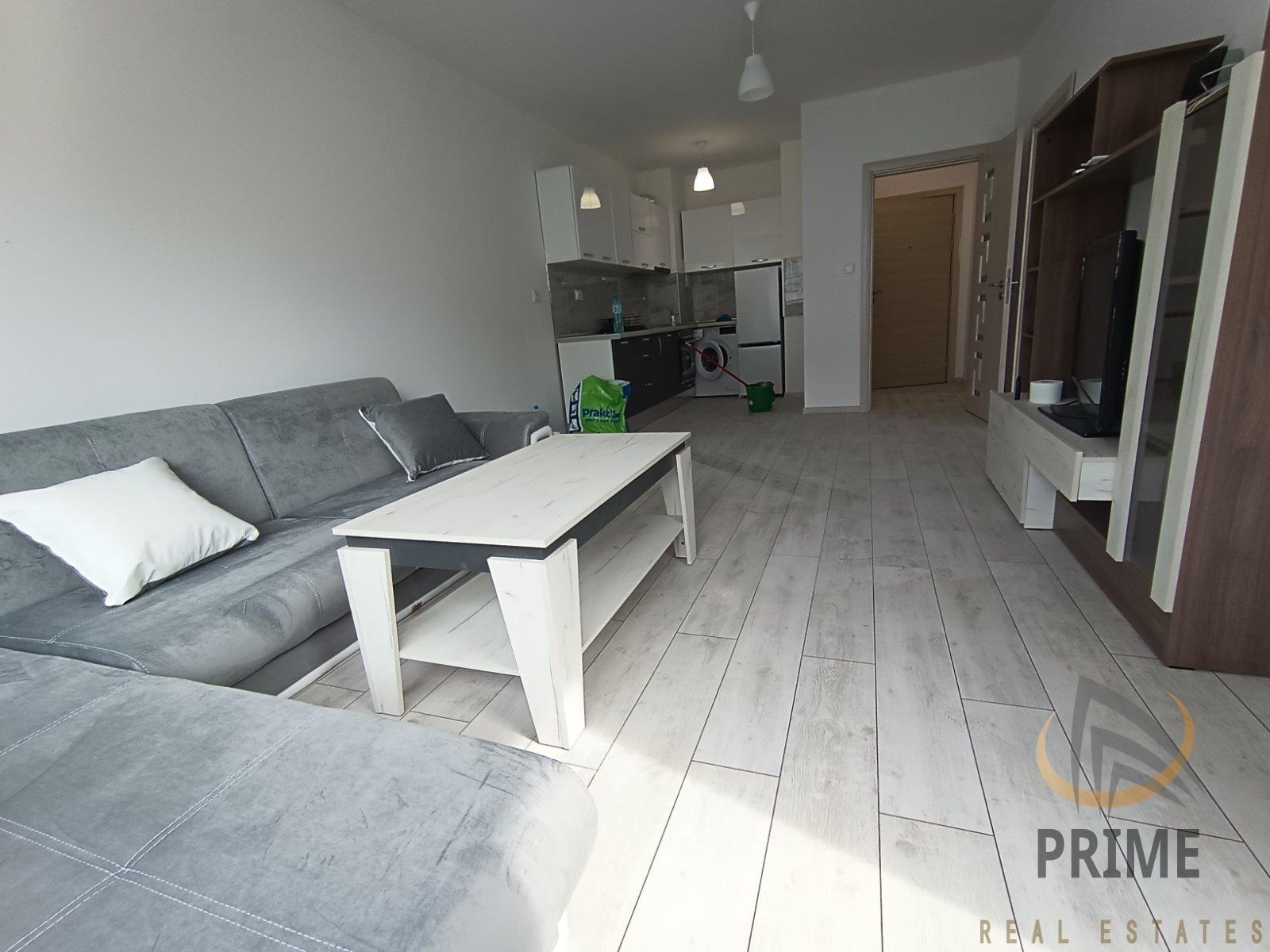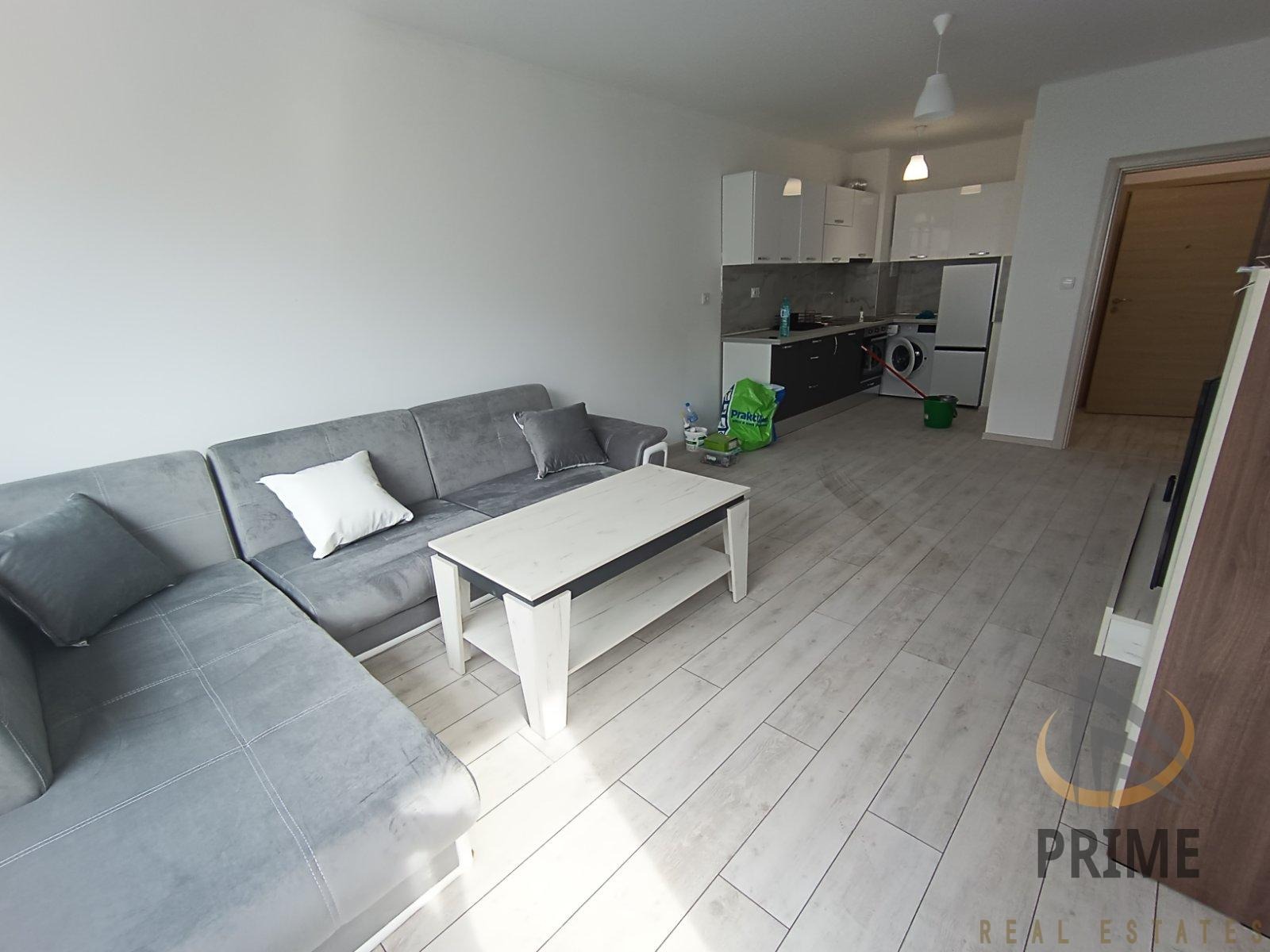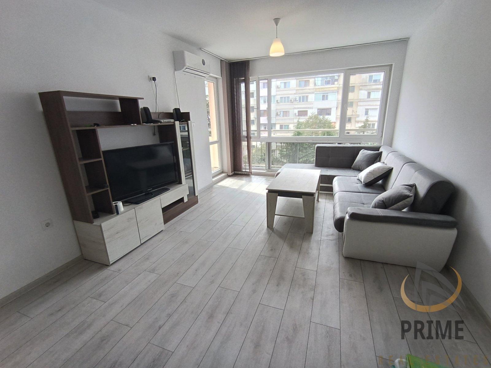 В нова сграда с Акт 16 и с асансьор. Стилно обзаведен с всички необходими мебели и нови ел. уреди в гаранция. Състои се от входно антре с ниша за пералнята, хол с кухня и трапезария, спалня, баня с тоалетна и тераса.