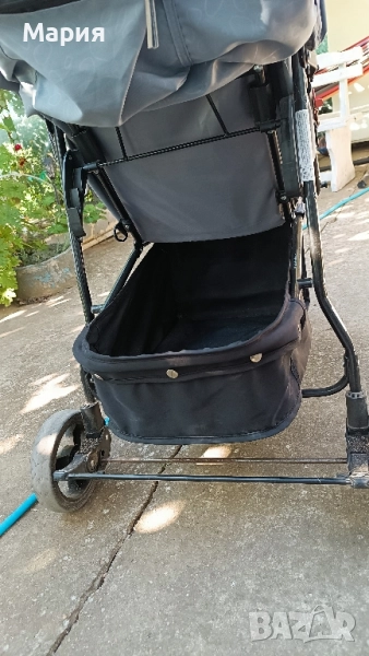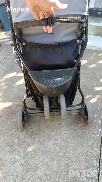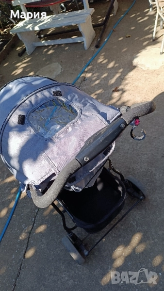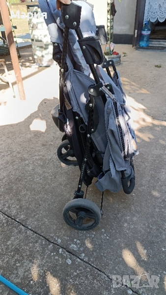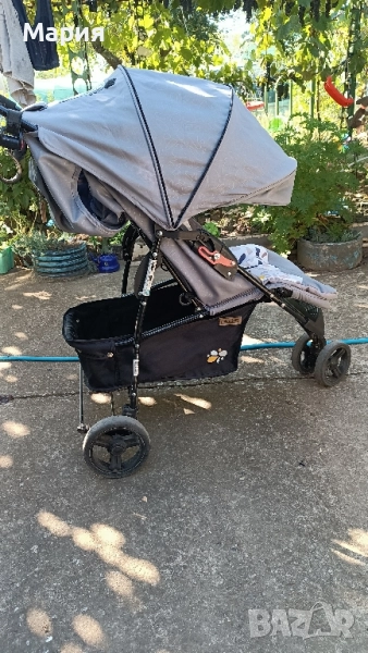 Използвана е ,но няма скъсано.. с леки следи от употреба. Има голям багажник и огромен сенник .
