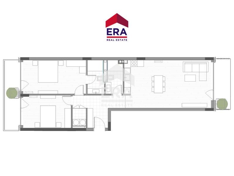 Апартамент Б20 115,89 кв.м. се състои от просторна южна дневна, спалня, детска спалня, антре, две отделни бани с тоалетни, склад, балкон и лоджия.