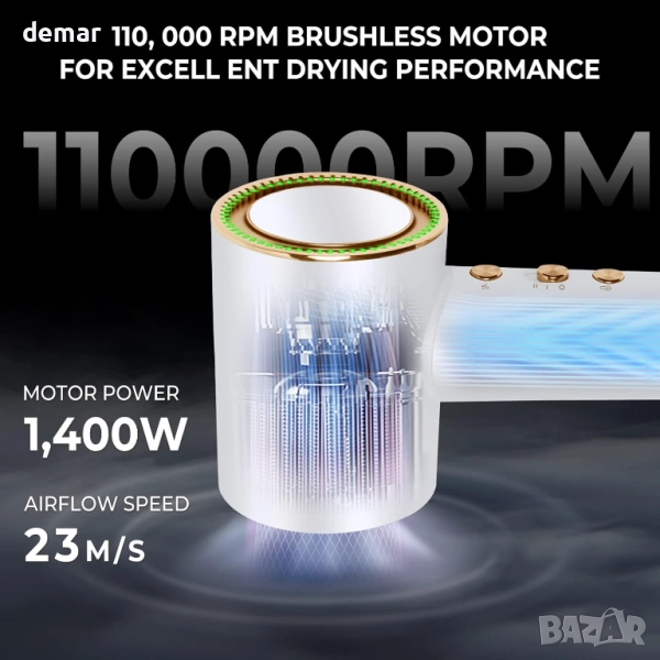 UKLISS 1400W сешоар за бързо съхнене, 110 000 оборота в минута