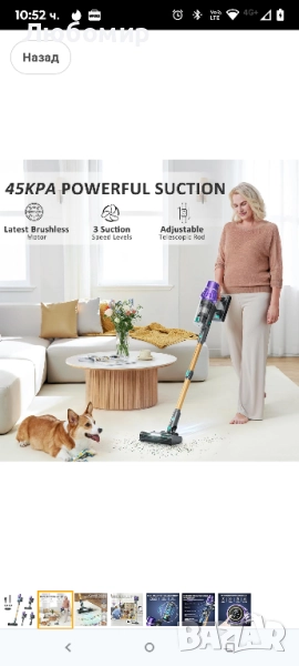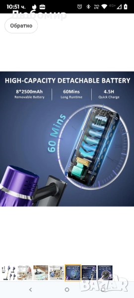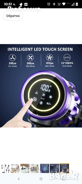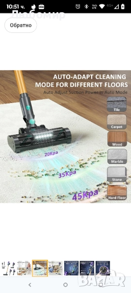 Технология Smart Auto Sensor за оптимално почистване: Изпитайте лесно почистване с нашата безжична прахосмукачка, оборудвана с усъвършенстван автоматичен сензорен режим. Тази интелигентна система открива нивото на прах и отломки по вашите подове и автоматично регулира всмукателната мощност съответно. Тя не само осигурява максимална ефективност на почистване, но и удължава живота на вашата безжична прахосмукачка, което я прави идеална за всички видове повърхности във вашия дом.