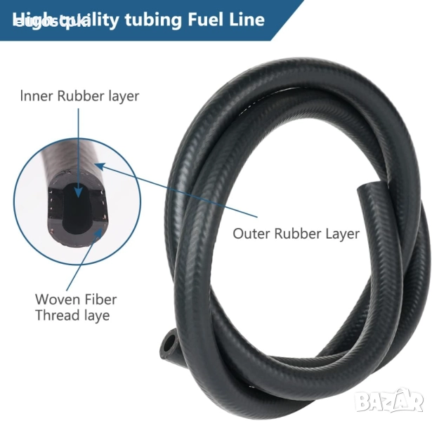 Маркучът за гориво е изработен от нитрилен каучук и плетена тел от найлонови влакна, която притежава характеристиките на маслоустойчивост, устойчивост на високи температури, добри характеристики на огъване и устойчивост на стареене. Здравата конструкция му позволява да служи дълго време.